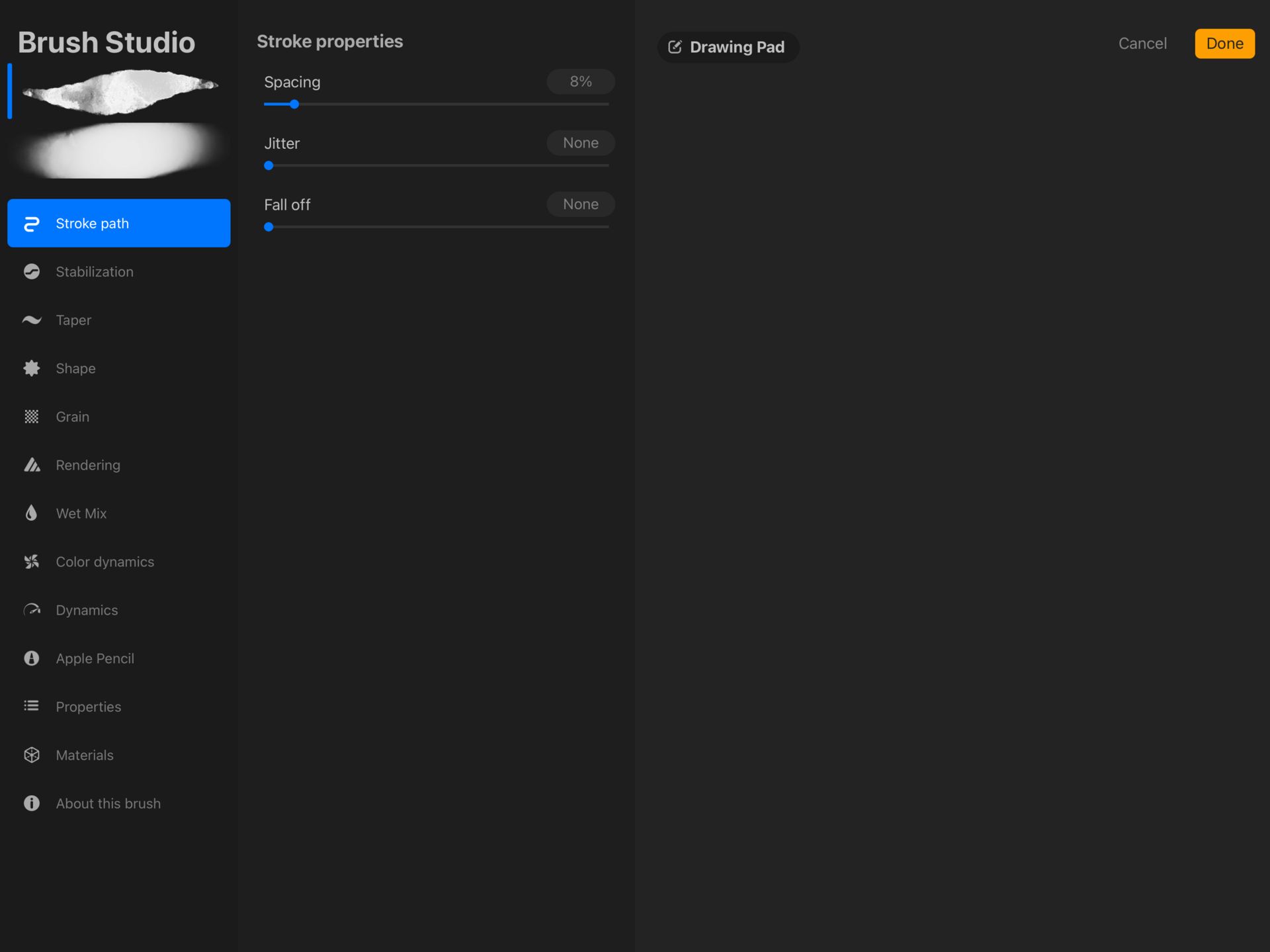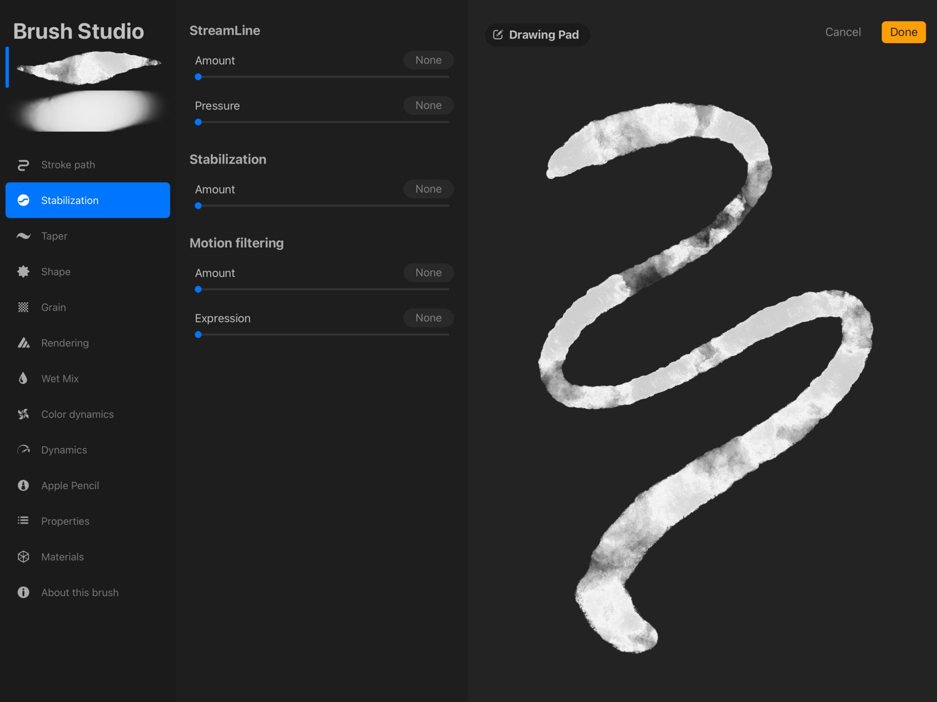 Step 2 – Go to Stroke Path → Stabilization (notice 0% stabilization on this)